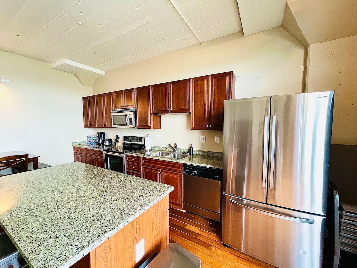 Vill du ha en tillflyktsort längs Lake Erie Shores, då har du hittat den! Vår historiska nyrenoverade rymliga lägenhet har allt du kan önska dig. Det gemensamma vardagsrummet, matsalen, arbetsstationen och köksområdet har ett av de största vardagsrummen i hela Lofts. Dess läge är idealiskt, bredvid kryssningsfartyget Goodtime och Jet Express för en snabb tur till Kelley's Island och Put-in-Bay, och inom gång- och cykelavstånd till många restauranger och attraktioner...och en kort bilresa till Cedar Point!