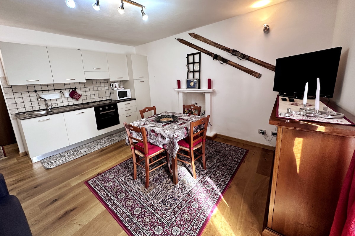 Alperna. Italien. Aostadalen. En stuga i en liten by på 1600 meter,i frid av ängar, betande kor och berg. Snö (vanligtvis) på vintern. En plats i hjärtat, kärleksfullt restaurerad som bevarar takets gamla bjälkar. En underbar utsikt från de stora fönstren och ett speciellt lugn för dem på jakt efter lugn, värme och avkoppling. Möblerna är mycket trevliga: trä framför allt, men också mer livliga färger och moderna bekvämligheter. Lugna utflykter, både på snöskor eller skidor.