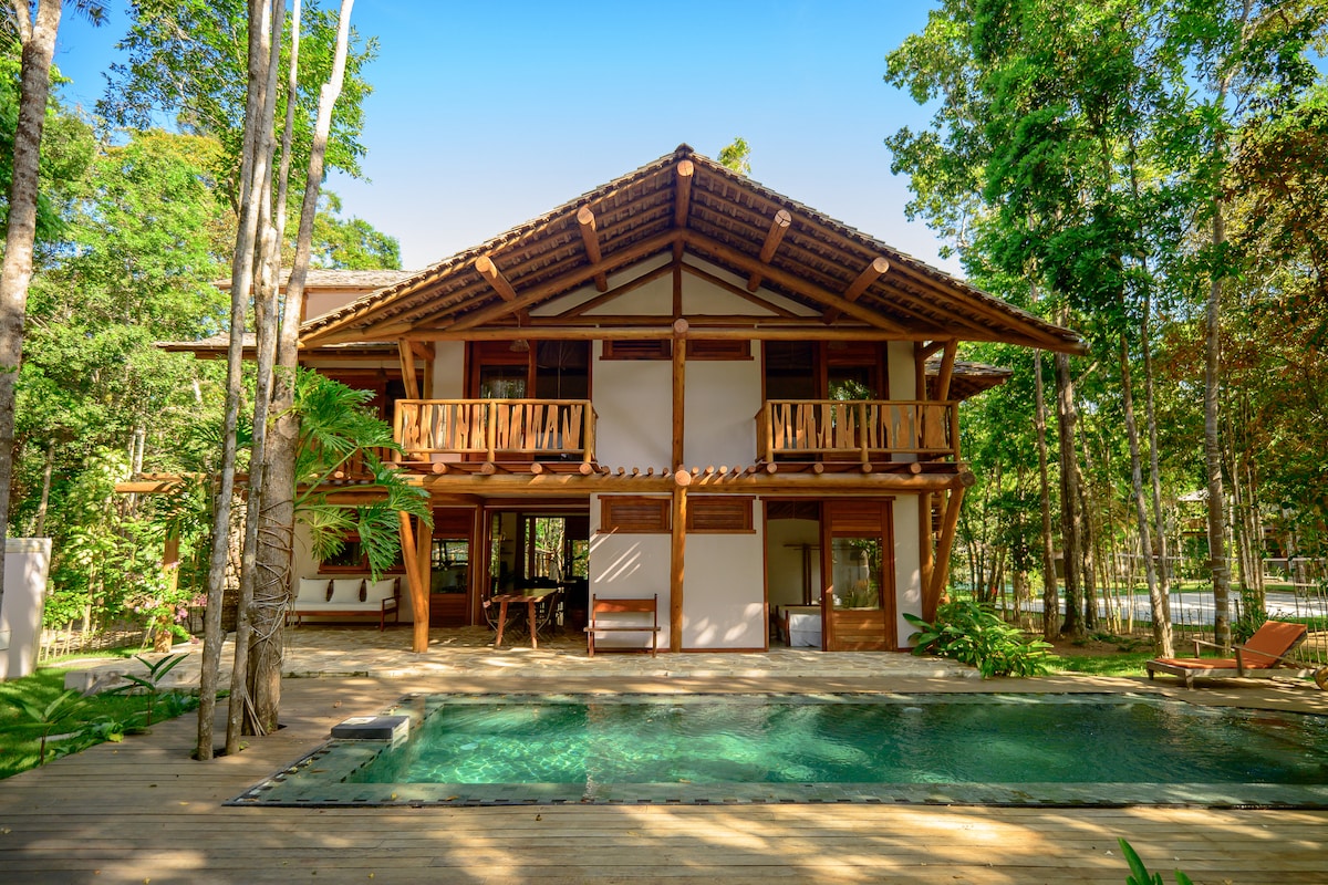 Välkomna till ett riktigt paradis! Du valde en av världens vackraste platser. Stugan är praktiskt taget omgiven av vatten med fantastisk utsikt direkt till ett naturreservat. Du kan ta kajaken in i den tropiska regnskogen eller direkt till havet där en av världens vackraste stränder väntar på dig. Njut av en cocktail vid solnedgången vid poolen eller loungen på en av de många däcken runt alpstugan. Njut av den världsberömda Quadrado som ligger i närheten. Njut av det bästa Brasilien har att erbjuda!