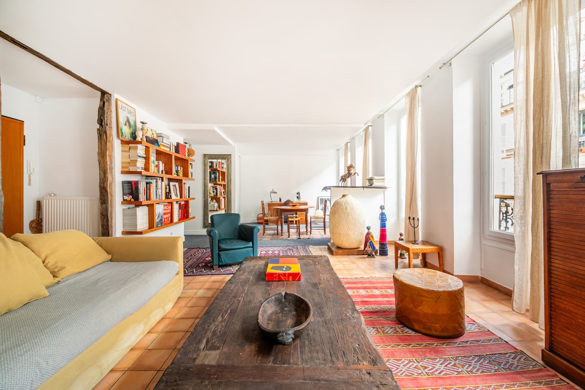Pigalle Dream - Steg från action, stylad för avkoppling Chic och solig lägenhet i ett av Paris livligaste grannskap. Bokstavligen några steg från Rue des Martyrs, Place Pigalle, Montmartre och Moulin Rouge. Omgiven av bra mat, hippa butiker och livligt nattliv. Har anpassade möbler, originalkonst och en queen size-säng med en madrass av resortkvalitet. Helt renoverad med gott om naturligt ljus. En elegant, bekväm tillflyktsort bara 10 minuters promenad från Galeries Lafayette och Operan