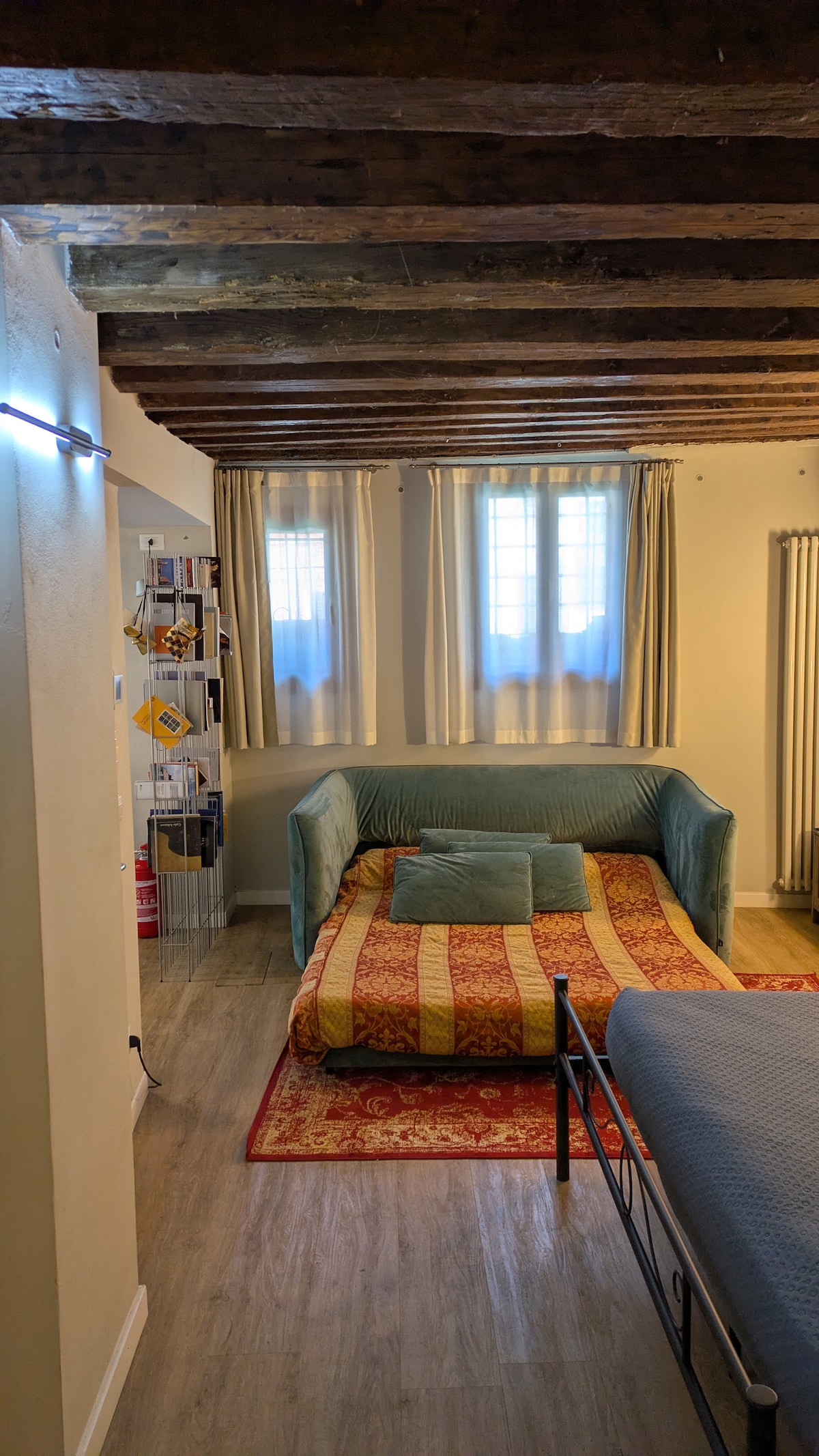 Min lägenhet är rymlig -140 kvadratmeter och ljus i ett historiskt palats i hjärtat av Venedig. Det finns ett stort sovrum med dubbelsäng och eget badrum, ett annat mindre sovrum med dubbelsäng och ett sovrum med enkelsäng och ett andra badrum. Köket är fullt utrustat och det finns ett bord där du kan äta frukost eller måltider. I det breda vardagsrummet finns ett bord för 6 och 2 stora soffor. Härifrån har du tillgång till en trevlig terrass med bord och stolar där du kan koppla av efter sightseeing!!!