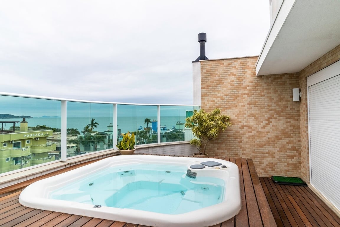 Vacker takvåning med privat jacuzzi. Du kommer att vara på Central Avenue, nära till allt!! ➢ När du korsar gatan kommer du att vara på Bombinhas Beach!➢ Bästa lägenhetsresorten med simbassäng, jacuzzi och fitnesscenter.➢ Husdjur är välkomna! *se våra regler➢ Takvåning med grill och fantastisk utsikt!➢ Räkna med två parkeringsplatser tillgängliga för dig!Gillade du den? Lägg till i din önskelista genom att klicka ❤ på