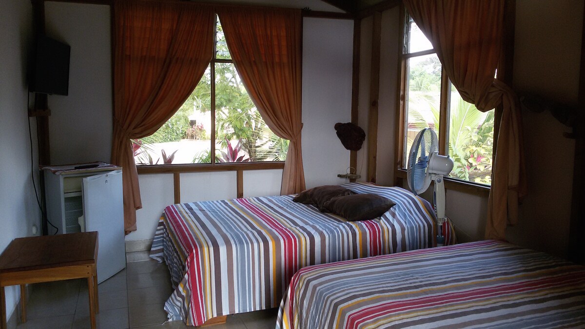 Vårt rena rum utan skräp har en queensize-säng och en bäddsoffa, luftkonditionering, minikylskåp, kaffebryggare och mikrovågsugn. Denna fastighet vid floden ligger bara en kort bilresa från surfdestinationen Dominical och Nauyaca vattenfall och är lätt att komma åt utan 4x4 behövs! Njut av en promenad vid floden in till staden, fiske, simning och djurliv, eller koppla av i vårt mysiga område vid floden med sittplatser, spel och grundläggande köksfaciliteter. Det perfekta läget för att utforska, surfa, vandra eller koppla av i autentisk costaricansk komfort.