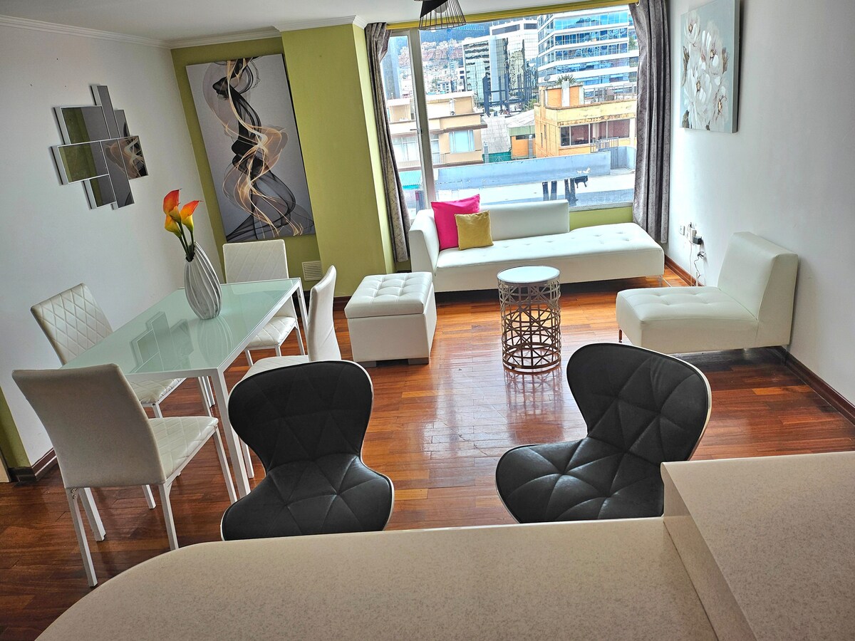 Welcome to your luxury home in Quito! Located in the iconic Epiq building (renowned for its architecture and safety), this modern suite is designed to offer a 5-star experience in the financial heart of the city. Whether you are here for business, tourism, or a couple's getaway, you'll find the perfect balance between rest and connectivity. We offer: Luxury Amenities: Pool, Gym. The Suite: Modern design, Queen bed, High-speed WiFi, and 24/7 Security.
