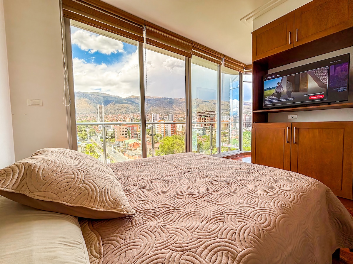 Ljus enrumslägenhet med ett privilegierat läge, mittemot stadion och bara några steg från Paseo del Prado. Njut av fantastisk utsikt och en varm atmosfär, med inredning som får dig att känna dig som hemma. Lägenheten erbjuder en bekväm och modern infrastruktur, utrustad med allt du behöver för en trevlig vistelse. Perfekt för dem som söker komfort, stil, renlighet och ett centralt läge i Cochabamba. Upplev den unika upplevelsen av att bo i ett utrymme som kombinerar det bästa av staden.