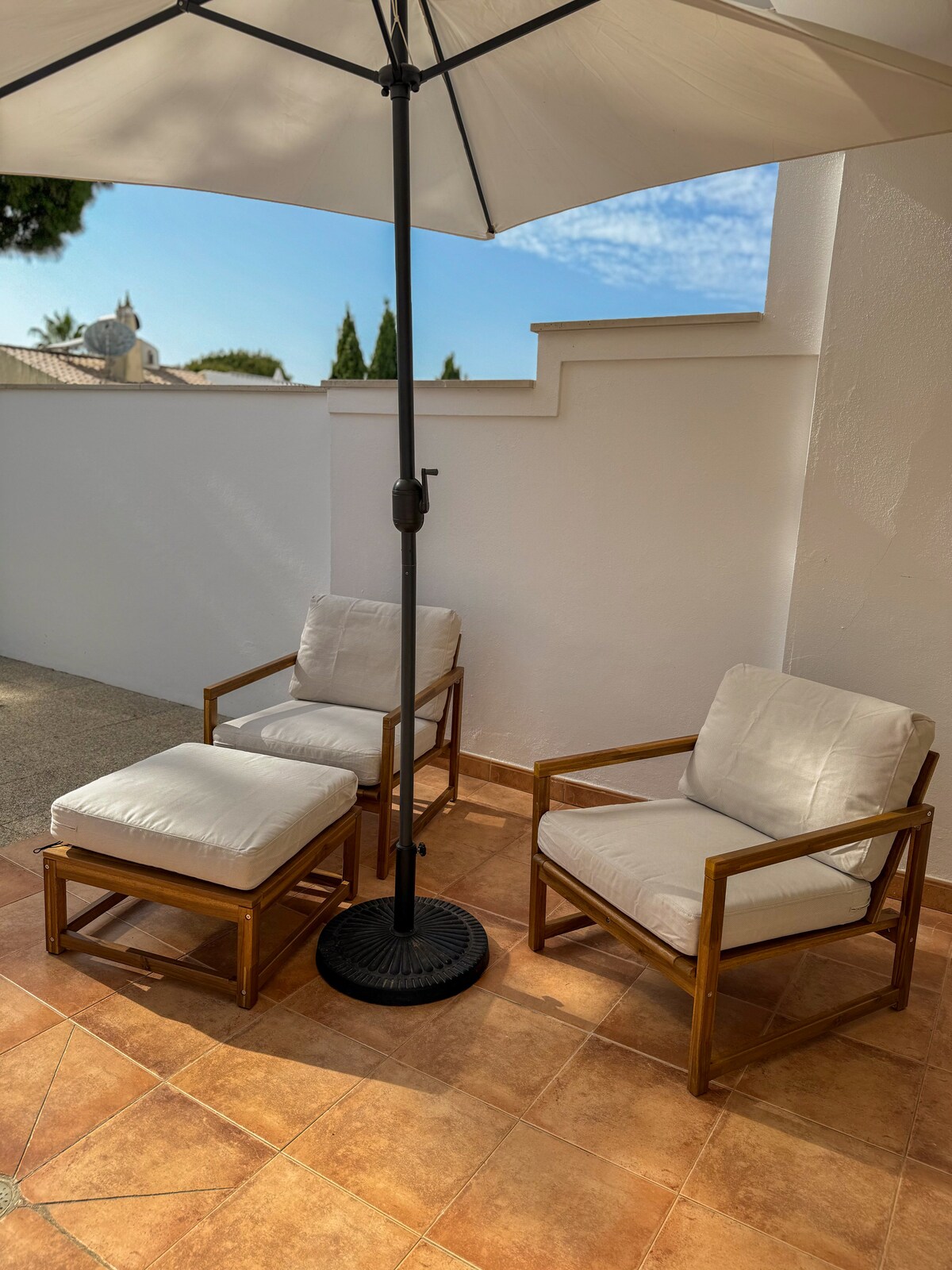Rymlig, nyrenoverad lägenhet i området Vale do Lobo. Egen trädgård, matplats utomhus med grillplats. Beläget i Algarves gyllene triangel, nära utmärkta restauranger och exklusiva butiker. Stormarknaden ligger inom gångavstånd och fiskmarknaden i Quarteira ligger 15 minuters bilresa bort. Ljus och avslappnad inredning, fullt utrustat för helgerna. Nära till stranden, tennisbanor och Vale do Lobos golfbana. Gratis tillgång till semesteranläggningens cyklar.
