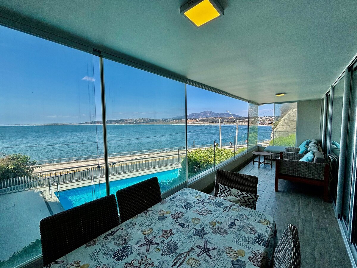 Duplexlägenheten ligger precis framför Reñaca strand mellan 3:e och 4:e sektorn med 180 graders utsikt över stranden och Valparaiso och omgivningen. Duplexlägenheten har stora öppna ytor med massor av ljus. Fullt möblerad och redo att njutas av. Duplexlägenheten har 65-tums platt-TV, optiskt fiber-WIFI internet, fullt utrustat kök och grill. Även privat parkering för 2 bilar.