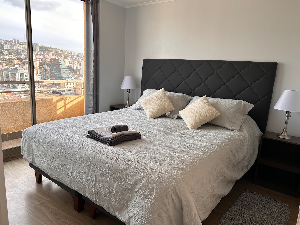 Njut av en exceptionell design, en unik standard och komfort, helt ny, nybyggd. Du kommer att njuta av en underbar utsikt i en unik miljö i ett säkert bostadsområde i Viña del Mar, bra förbindelser till staden och vägen från Santiago. Alla möbler är nya, med designmöbler och stil. Den har en Queen-säng av hög hotellstandard med drimkip-topper
