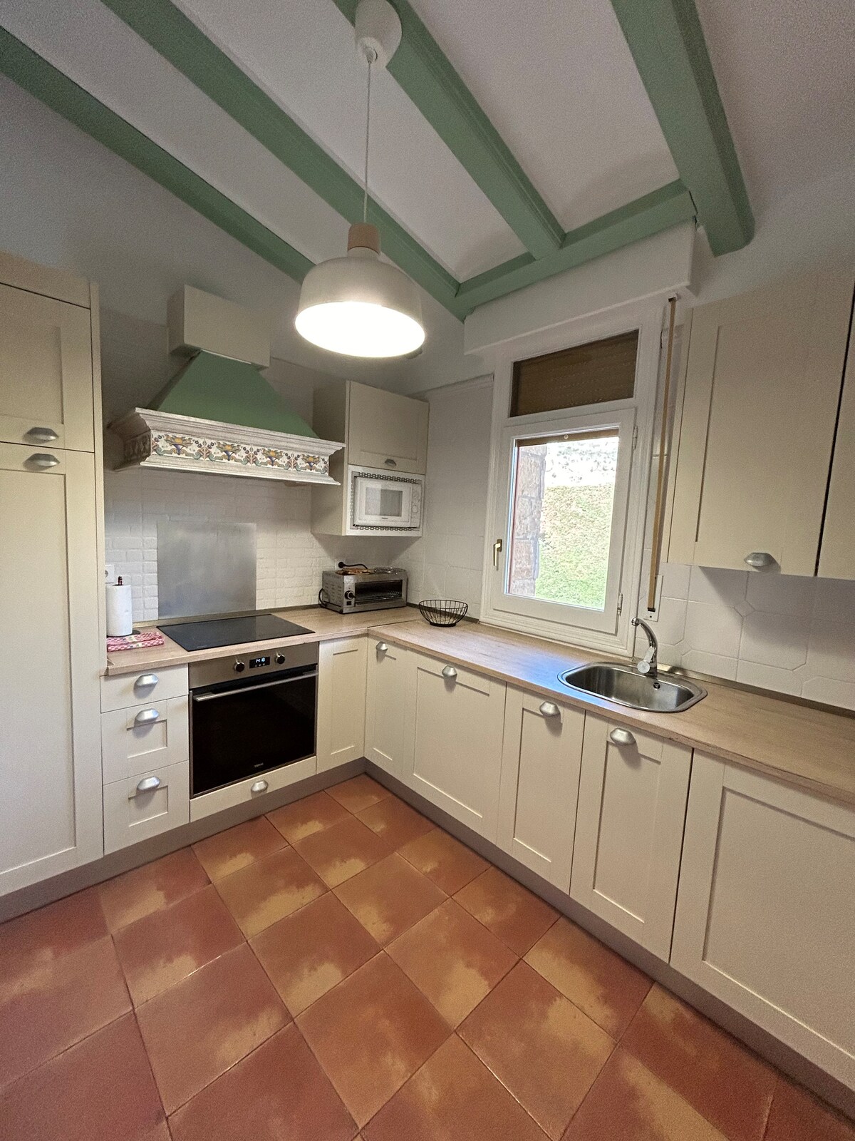 95mc på två våningar och utrustad med nödvändiga tjänster för en bra vistelse (luftkonditionering, pelletspis, tvättmaskin, diskmaskin, mikro, brödrost, ugn, nespresso kaffebryggare, wifi, Netflix) Bottenvåning; Kök/matrum, vardagsrum, sovrum med dubbelsäng, trädgård och badrum. Andra våningen;sovrum med dubbelsäng, barnloft och enkel bäddsoffa. Terrass med 16 mc Det finns bara ett badrum. Aspekt att överväga om bokningen är för 4 och inte från samma familj