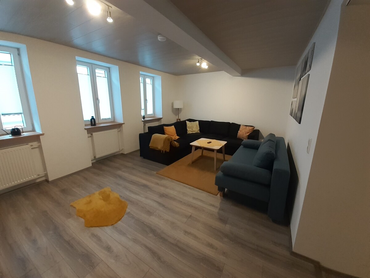 Vår moderna lägenhet ligger centralt i den gröna staden omgiven av vingårdar, direkt ovanför vår butik "Das Stoffatelier" i gågatan. Många kaféer, restauranger, butiker och turistinformation (ca. 100 m) ligger på bekvämt gångavstånd. Läget är idealiskt för att upptäcka Pfalz och dess vinbyar – med bil, cykel eller tåg. Perfekt för par eller affärsresenärer som uppskattar komfort och korta avstånd.