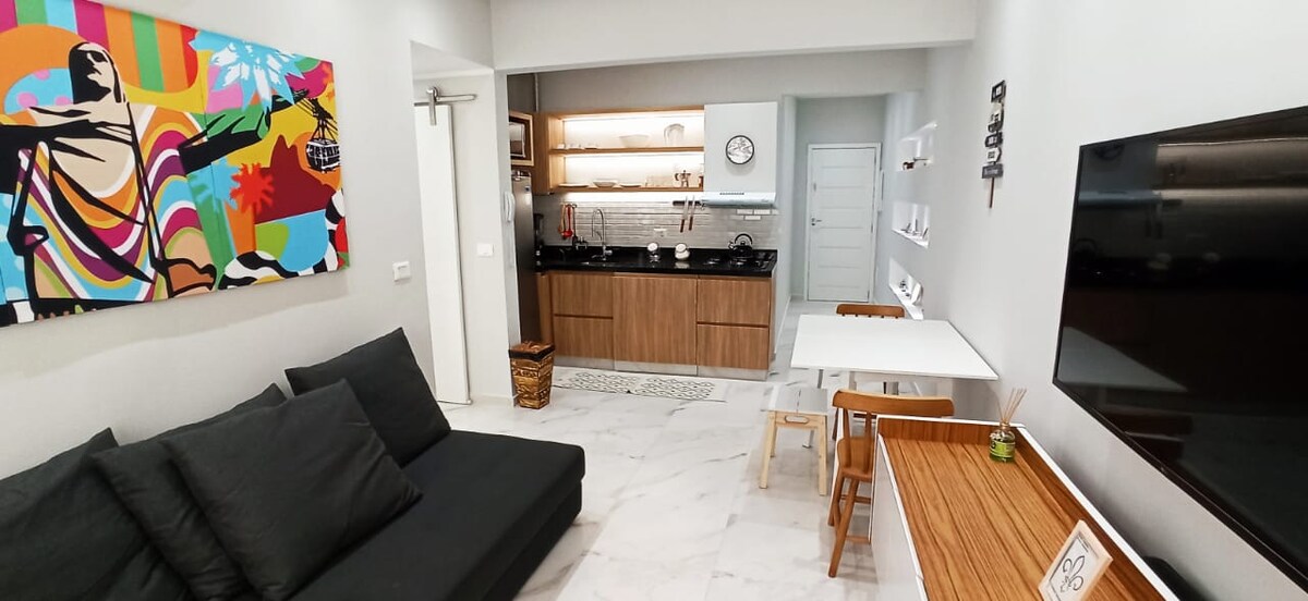 *Läs husreglerna innan bokning.* Välkommen till din perfekta Rio-semester, där den autentiska essensen av Rio möter komfort och god smak. Bara några steg från 3 av de mest kända stränderna i världen: Copacabana, Arpoador och Ipanema. Dess läge är verkligen perfekt! Den är utrustad med 2 delade luftkonditioneringar wifi 350mb dubbelsäng (Queen) E-lås för självincheckning utrustat kök 32" smart-TV Levee stol (för strand eller park) Strandhanddukar i Hammam-stil Boka nu och njut av din vistelse hos oss.