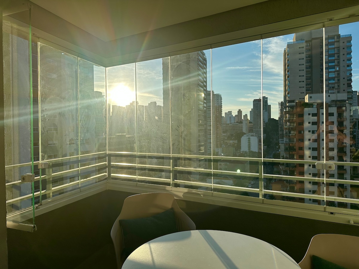 Estúdio espaçoso com muito design, arquitetura e a melhor vista de São Paulo. Loft completo! Com cama queen, closet, ar condicionado silencioso, cozinha completa, home office, WI-FI, TV 55” e uma belíssima banheira de imersão, de onde pode apreciar o seu drink preferido e curtir uma vista apaixonante. São Paulo toda estará há poucos minutos de você. Acesse o metrô andando apenas 200m. Reserve com tranquilidade! Proporcionaremos uma excelente hospedagem e uma ótima experiência!