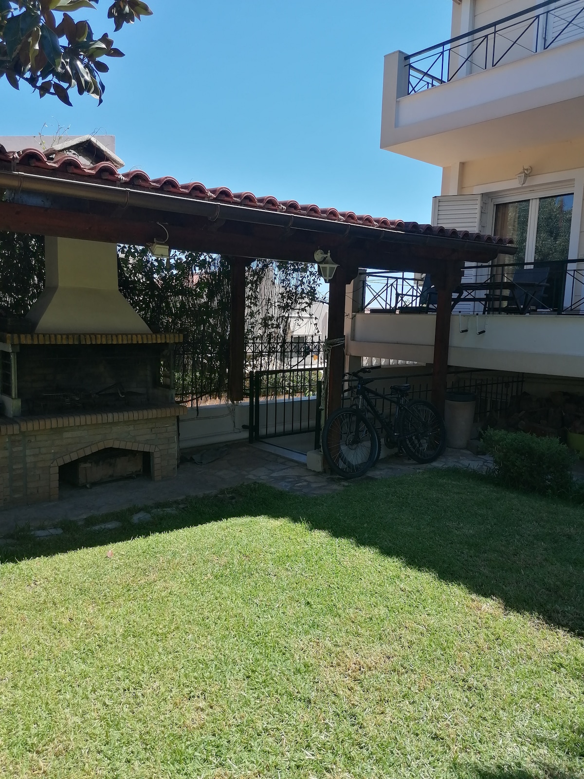 Rymlig källarvåning med trädgård och grill i Kryoneri