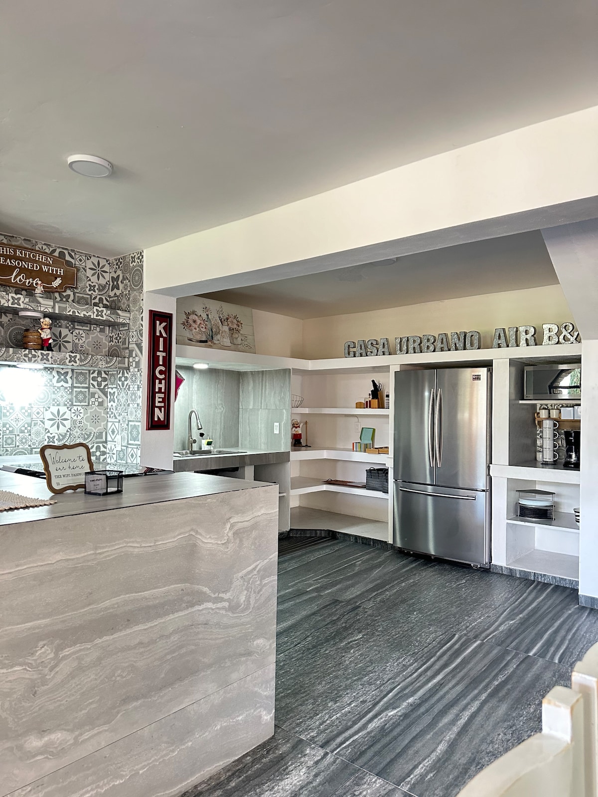 Fullt utrustad svit, med minikök, minibar, mikrovågsugn, kaffebryggare, tvättmaskin/torktumlare, walk in-klädkammare, strykjärn, strykbräda, bagagehållare, minisplit kyla/värme, takfläkt, 43" skärm med Wi-Fi och lokala kanaler, garage med automatisk grind framför parken, ett par kvarter från Plan de Guadalupe internationella flygplats, mycket lugnt bostadsområde.