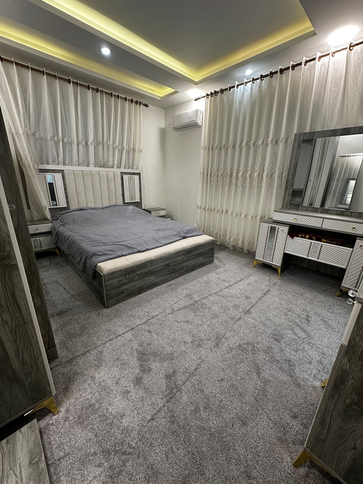 Rymlig helt ny lägenhet - 150 kvm Funktioner: 3 sovrum: 1 sovrum 2 ytterligare sovrum 3 badrum Vardagsrumsgäst Majlis Apparater: Kylskåp på 20 fot Automatisk tvättmaskin med gasugn Mikrovågsugn dammsugare matmixer Varmvattenberedare 6-personers matställ Fullständiga köksverktyg Underhållning: 50-tums smart-TV 3 delade luftkonditioneringsenheter Ytterligare bekvämligheter: Gratis parkering Ingångskamera för soffbord Säkerhetsdörrar Stor grill och vattenfall 150 kvm uteplats