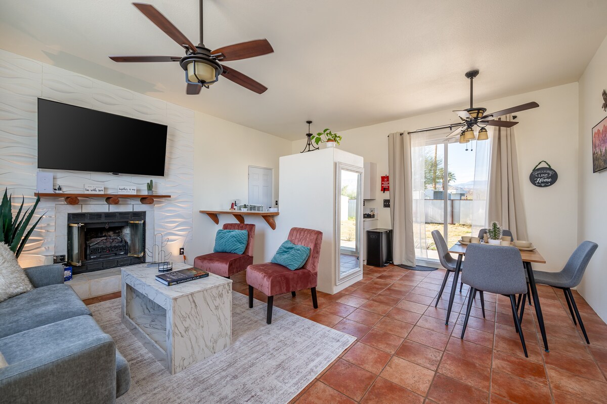 3BR Retreat på 40 Acres med bubbelpool och kockens kök Njut av fantastiska solnedgångar, stjärnskådning och fullständig integritet i detta mysiga boende med 3 sovrum. Med luftkonditionering, ett professionellt kök och en bubbelpool är det den perfekta dolda pärlan. Mini Pickleball-bana, fotbollsbord, 48-tums spelbord och EV-laddare. Inhägnad gård. Utforska grusvägar, vandra till Eagle Rock (leden är 15 min bort), besök Julian eller Borrego Springs. Bara 1,5 timmar från San Diego. Boka med vår närliggande fastighet för den ultimata familjesemestern!