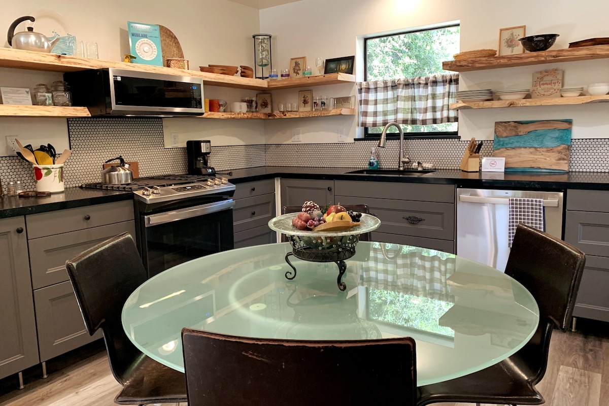 *UNIK FASTIGHET ÅTERVÄNDER TILL AIRBNB* Stoneapple Farm är en sagostuga inbäddad bland 6 tunnland ekar och päronträd. Byggd i slutet av 1800-talet som ett äppelförpackningshus och ombyggd av en välkänd arkitekt på 1940-talet är Stoneapple Farm en charmig tvåvåningsstuga full av vintageböcker, ett perfekt ställe att koppla av och njuta av den lilla staden Julian. Alla är välkomna inklusive din speciella hundvän. De nya ägarna har behållit charmen på Stoneapple Farm samtidigt som de har gjort det bekvämare