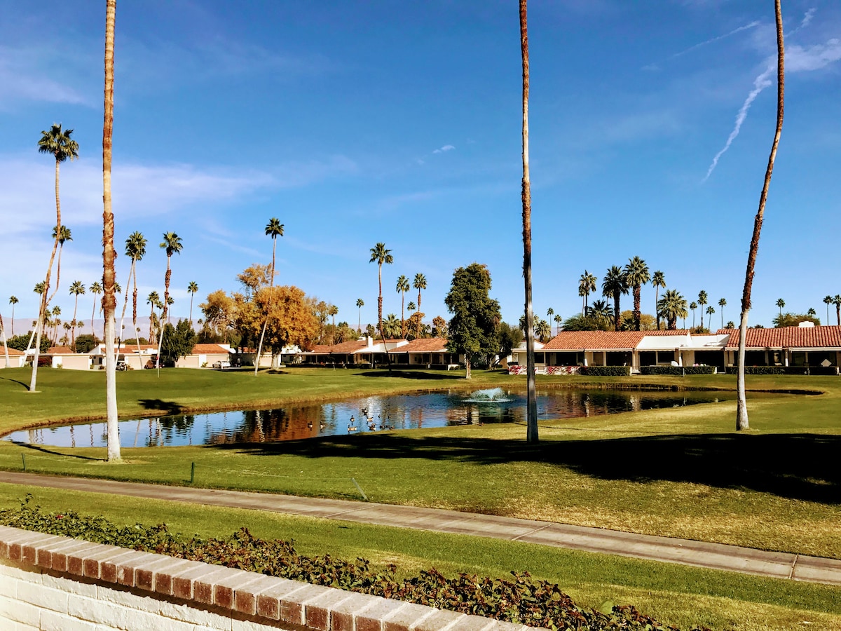 Lugnt och privat. Frodiga trädgårdar, höga palmer och fridfulla fontäner omger dig. Pool och bubbelpool precis utanför din bakdörr. Detta boende har vidsträckt utsikt över golfbanan, bergen och sjöarna med fontäner. Njut av grillning och solnedgångar från din uteplats. Njut av en runda tennis eller pickleball, ett träningspass på gymmet, en massage på spa och/eller middag och drinkar på klubbhuset!