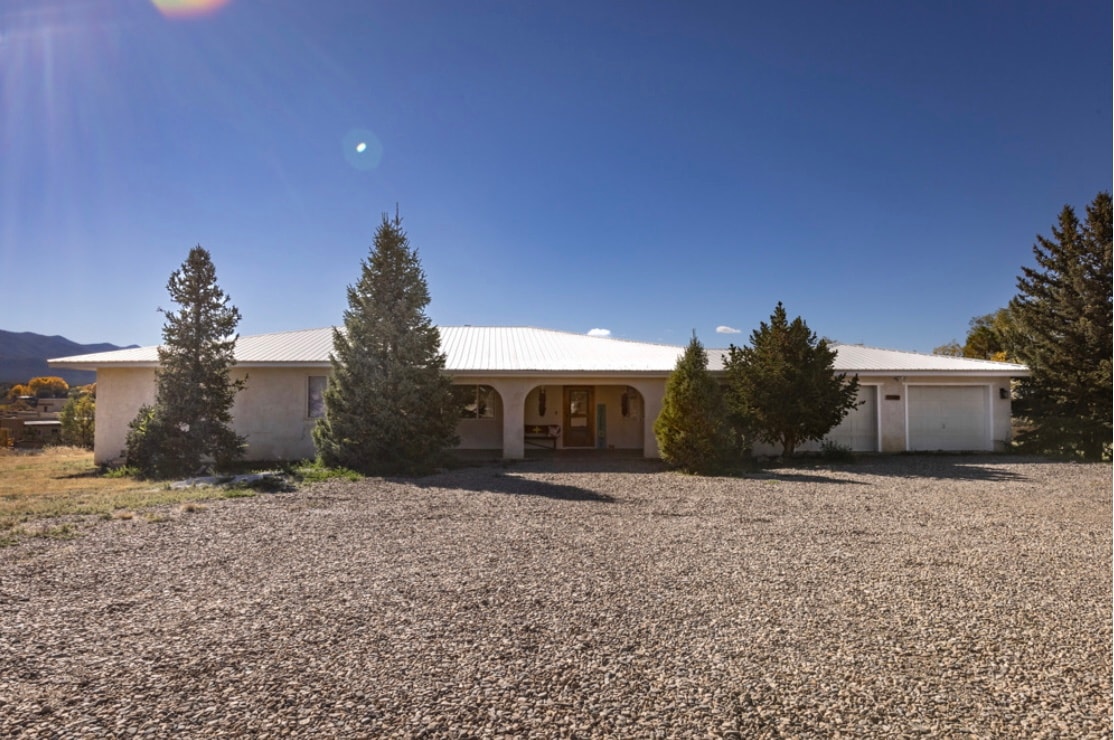 En arkitektonisk pärla med privat tillgång till naturliga varma källor i Rio Grande Gorge Park. Ett levande och andande konstverk på femton privata tunnland inbäddat bland enbärsträd, pinon och salviaborste, som erbjuder en svepande utsikt över den omgivande dalen. Hållbart byggd med gjutna jordväggar, korrugerat metalltak, strålningsvärme och arbete i japansk stil mahogny trä, plus alla bekvämligheter och bekvämligheter i ett modernt hem. Miles av vandringar in i och ovanför Rio Grande River och Gorge.