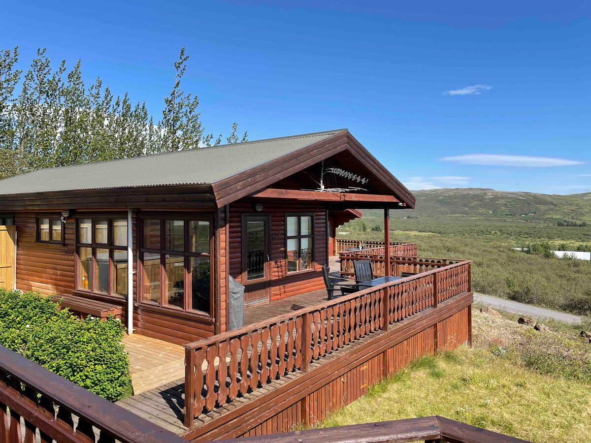 Golden Circle stuga med fantastisk utsikt och bubbelpool