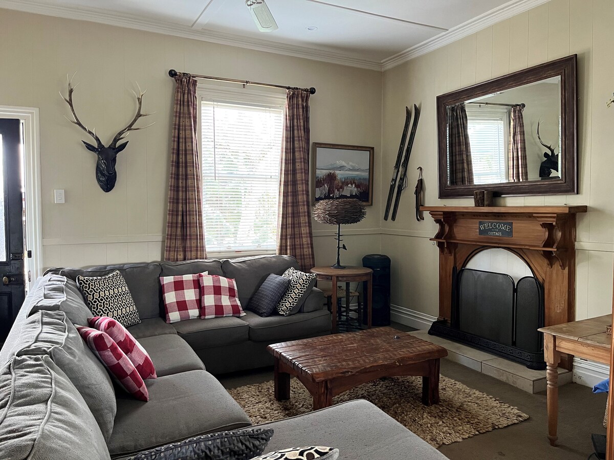 Vår stuga är vintage, men med en modern charm, med CD-skivor och DVD-skivor samt brädspel, pussel, böcker och National Geographic från förr. Inbäddad på grunden av vår 1890-tal byggda villa har stugan en helt egen historia. Det var ursprungligen nere på gräset, flyttades uppför kullen på 70-talet. Huset är byggt byggt av en sågverksägare som också byggde biografen/teatern i stan 1915. Teatern restaureras och visar nu filmer från förr i tiden. Fråga oss om mer information