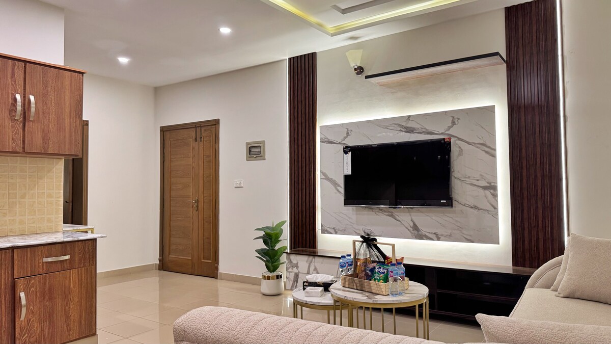 Välkommen till din moderna flykt — en lägenhet med 1 sovrum och en oändlig pool, mittemot Giga Mall i hjärtat av DHA Islamabad. Njut av en lyxig vistelse med elegant inredning, ett fullt utrustat kök, smart TV, höghastighets-Wi-Fi och tillgång till den fantastiska takterrassens infinitypool. Perfekt för affärsresenärer, par eller små familjer som söker komfort, bekvämlighet och stil bara några steg från Giga Malls shopping och restauranger.