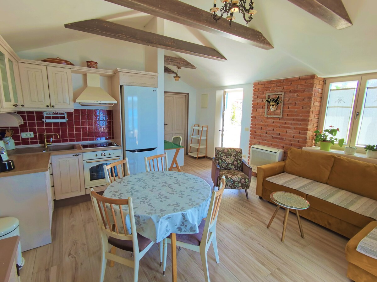 Ta det lugnt i denna unika och mysiga tillflyktsort. 200 år gammalt hus, restaurerat i en traditionell stil komplett med modern utrustning. Helt luftkonditionerat och med gratis WiFi och TV med Netflix-kanal. Första våningen består av kök, matrum, vardagsrum och badrum med tvättmaskin. På andra våningen finns två rum med en dubbelsäng och ett separat badrum. Huset har flera terrasser: en privat bredvid huset med utsikt över staden och floden och en rymlig central terrass med grill.