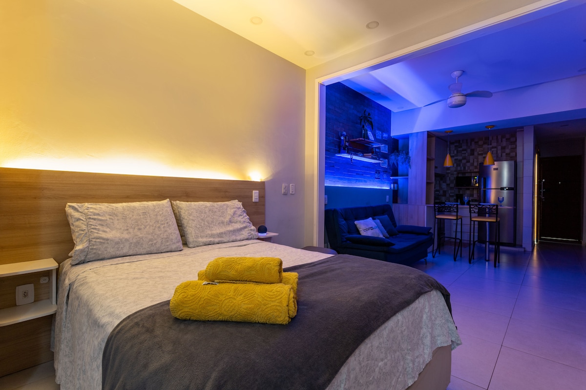 Välkommen till din tillflyktsort vid stranden i Leme, den lugna början av Copacabana Beach! Bara 3 minuters promenad från sanden, vår kärleksfullt inredda lägenhet lovar en unik vistelse. Omfamna den livliga lokala kulturen med närliggande butiker och restauranger, och enkel tillgång till Rios underverk. Vi firar mångfald och välkomnar alla gäster, vilket främjar ett utrymme med goda vibbar och lugn. Njut av denna charmiga del av Rio! 🏳️🌈♥️🙏🏽