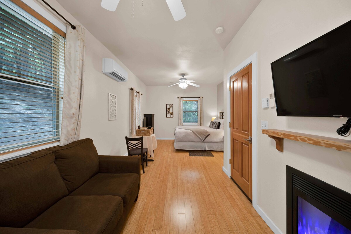 Titta på soluppgången från bubbelpoolen eller solnedgången från poolen. En lugn bok vid eldstaden eller en vänlig Cornhole-turnering. Matälskare? Vi hjälper dig. Utomhusköket är platsen att vara. Sporten täcks med två utomhustv. Det är komforten och stilen som skiljer The W från mängden. Dagstidens atmosfär och nattens atmosfär är anledningen till att detta är Reddings BÄSTA bakgårdsresort. Kolla in extrafunktionerna. Bara 8 minuter från Redding Municipal Airport, I-5, Hwy 44, Redding Civic Center och Bethel.