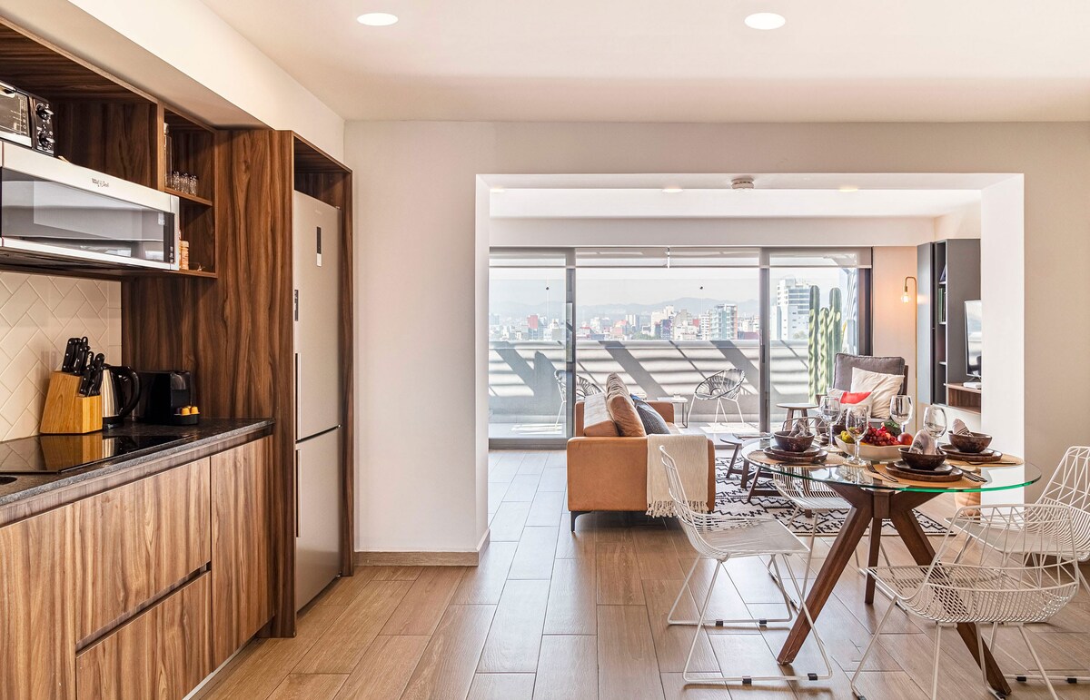 Loft i Reforma CDMX med terrass och parkering