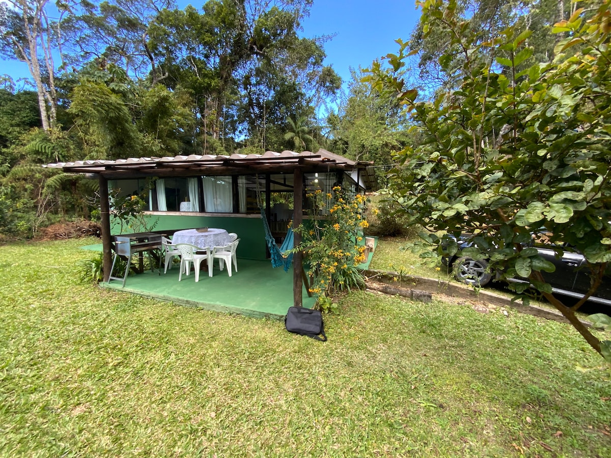 local muito tranquilo! ideal para renovar as energias! fugir da correia do dia a dia,com muita paz e tranquilidade! ar totalmente puro céu ao cai da noite totalmente encantador. a 700 metros do Encontro dos rios Lumiar, com vista para as montanhas.dar pra ouvir o som do rio.ainda tem vista pra estrada toca da onça! chalé totalmente equipado com wi-fi ar condicionado todos os utensílios de cozinha chuveiro a gás microondas liquidificador sanduicheira TV smart com Netflix Sky.