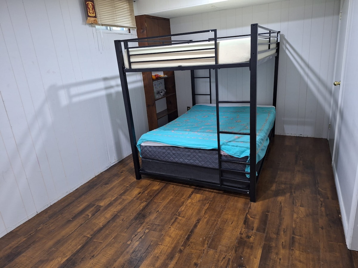 ett sovrum källare med fullt utrustat kök och full tvätt