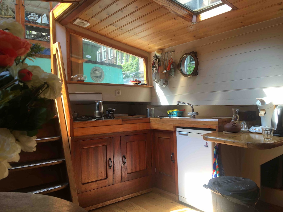 Söt autentisk husbåt i stadens centrum!