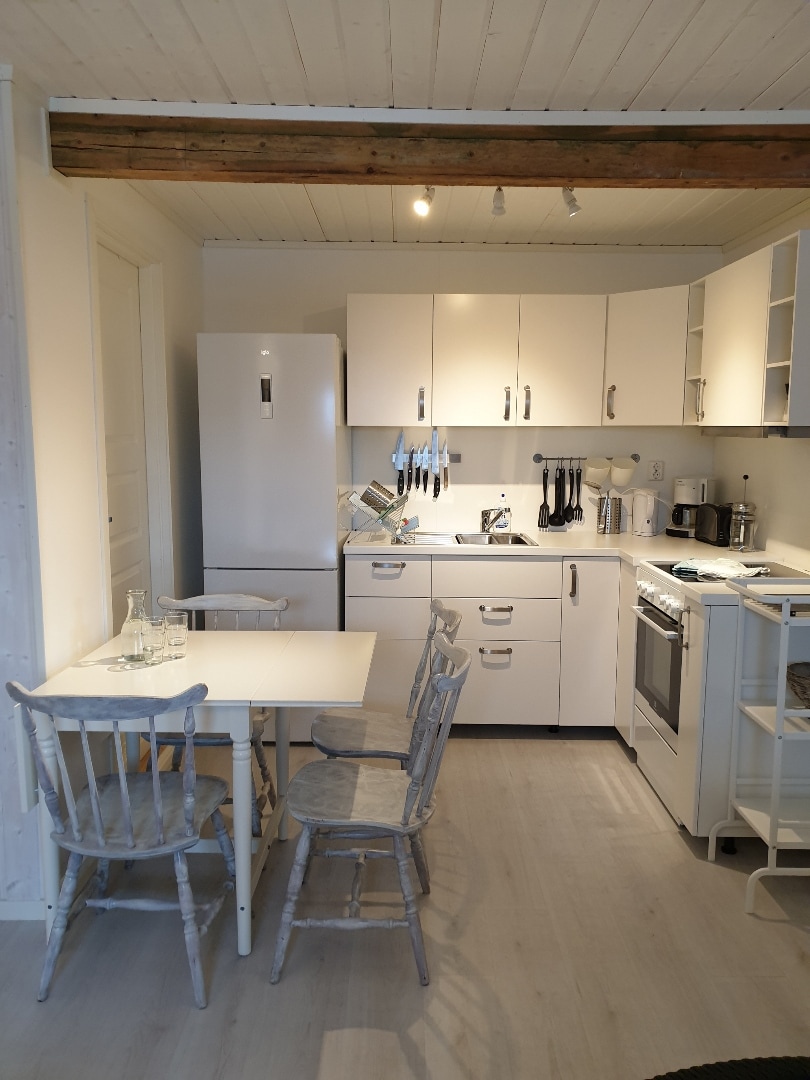 Ny ettorom för 2 personer. Lugnt läge, mitt i naturen, nära promenadleder. Till affären ca 700 m. 1 rum med kök, matplats och dubbelsäng. I köket finns induktionsspis, kylskåp, vatten- och kaffekokare, mikrovågsugn och diskmaskin. Porslin och bestick. I badrummet finns bland annat dusch, tvättmaskin. Torkskåp i hallen. Möblerad terrass. Priset inkluderar sängkläder. Möjlighet att hyra bastu och bastubadkar mot en extra avgift. Slutstädning mot en extra avgift.