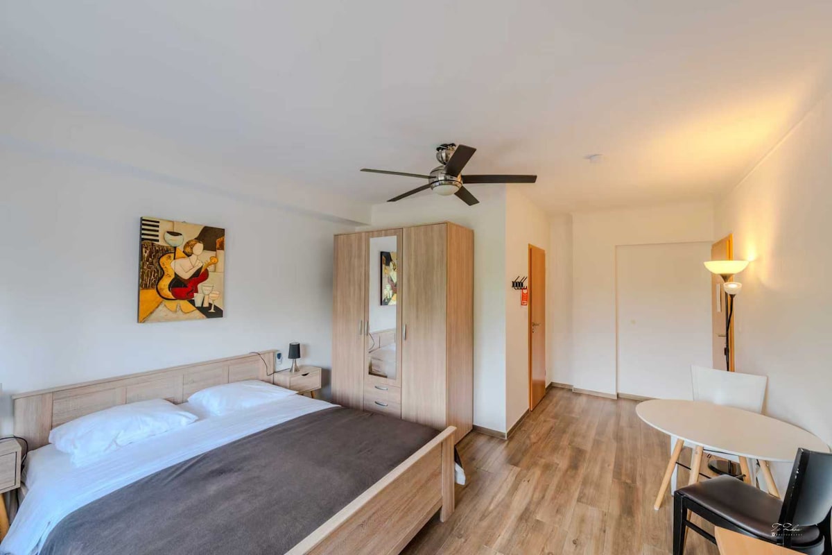 Fördjupa dig i bekvämligheten av denna moderna stegfria studio, bara några steg från centrum (8 km), Kirchberg (6 km) och flygplatsen (3,7 km). Fullt utrustat kök, klädkammare, dusch, arbetsyta, japansk sovplats med Smart TV ansluten till Netflix och Disney+. Njut av terrassen för att njuta av de vackra dagarna och begrunda solnedgångarna i lugn och ro. Dessutom inbjuder en dedikerad cykelhörna dig att åka på äventyr i din egen takt.