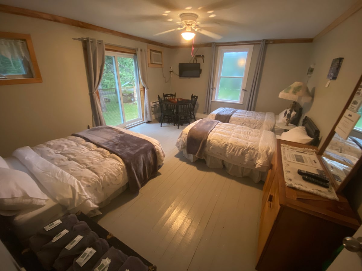 Frukost är tillgänglig från 07:00 till 09:30 måste bokas 24 timmar i förväg, kaffe/te frukost $ 15 + hst Inkluderat i din vistelse är ett GRATIS Algonquin Park Day Pass ($ 21 per dag besparingar) Vi har rum 4 som har en dubbelsäng, en våningssäng och ett fönster som tittar ut på Madawaska River . Detta är ditt privata rum. Du kommer att dela med andra människor ett fullt utrustat kök, två badrum, TV-rum med satellit-TV, utomhusgrill, eldstad, picknickbord och WiFi.