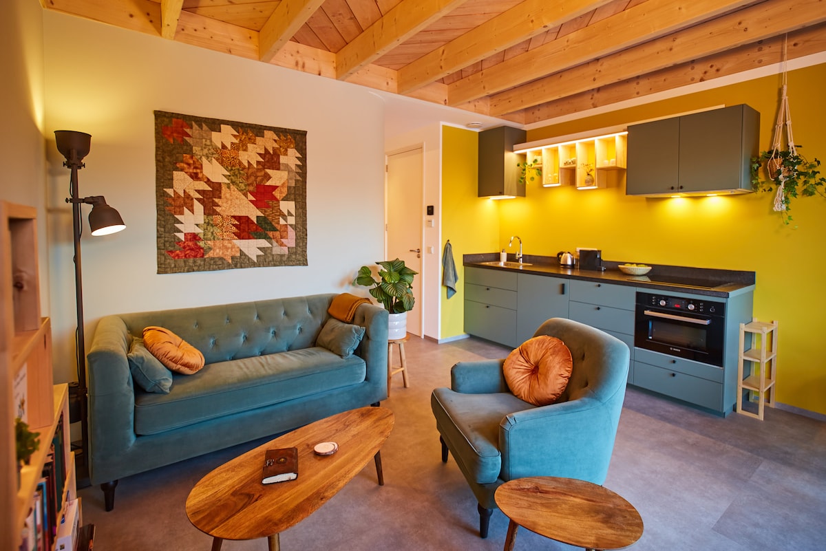 Vacker, moderniserad alpstuga (2021) med skogen på gångavstånd och naturparkerar Veluwe & Planken Wambuis runt hörnet. Städerna är lättillgängliga med bil eller tåg. *Lättillgängligt från motorvägen och stationen ligger inom gångavstånd. *Du får tillgång till cyklar i samråd * Hundvänligt * Massor av vandrings- och cykelmöjligheter * Beläget i en chalet park; den rymliga trädgården med massor av grönska och träd garanterar din integritet * Lounge terrass soligt läge * Lekplats finns i boendet