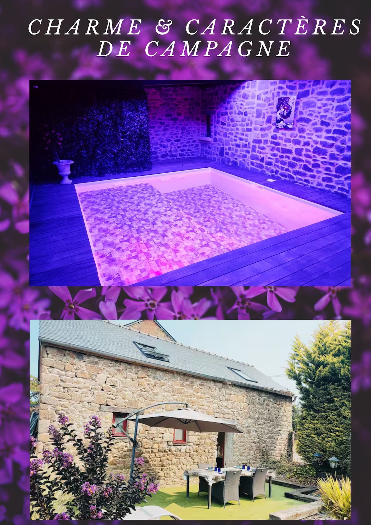 Bekväm lantlig stuga. Uppvärmd inomhuspool året runt vid 28°. En gräsmatta med utomhusspel är tillgängligt. För din komfort bäddas sängarna vid ankomsten. Gite ligger 15 km från Rennes centrum. Vår stuga är en idealisk pied-à-terre för att upptäcka Bretagne. Cancale, Saint-Malo, Golf du Morbihan, La Gacilly, Rochefort-en-Terre eller Dinan och Fougères samt den berömda Brocéliande-skogen.