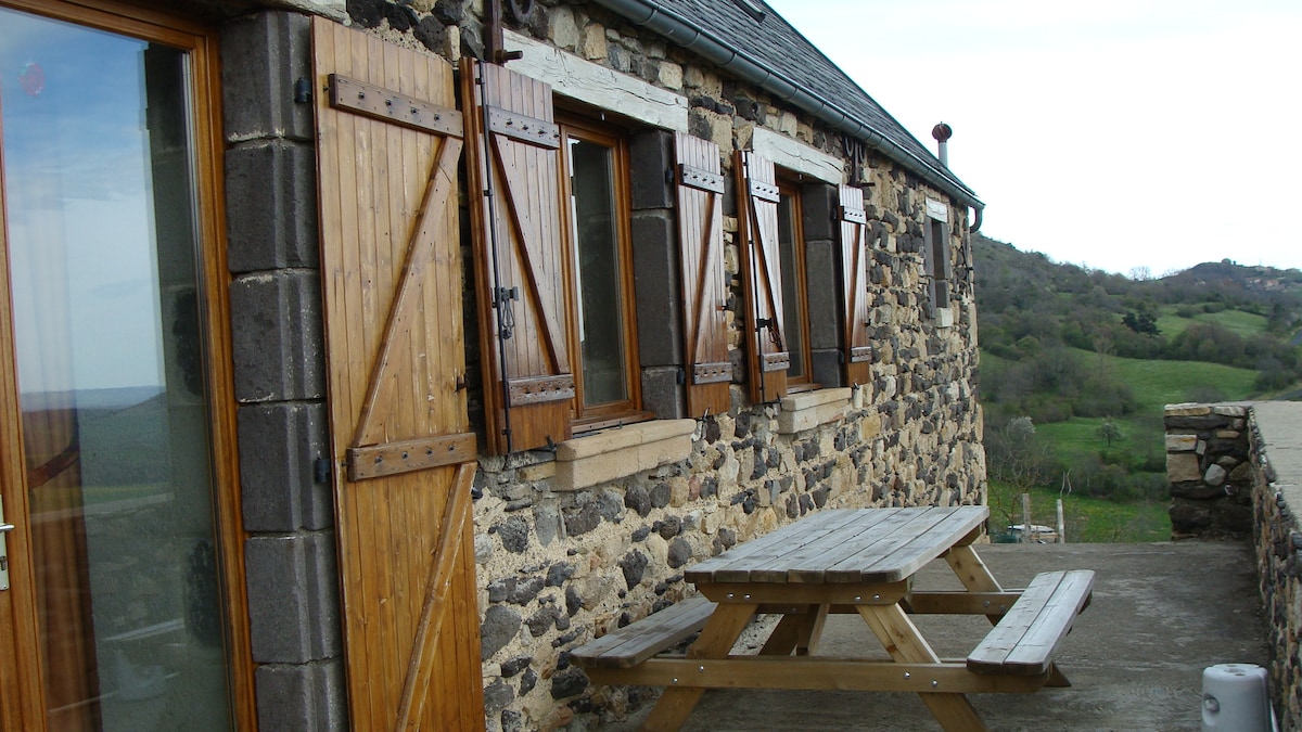 Beläget på landet, 4 kilometer från Condat och intill vårt hem, ligger vår Cantal gård känd som en longère. Tjocka stenväggar, träbjälkar, stort vardagsrum med traditionell öppen spis och vedeldad spis, internet-TV, två sovrum, badrum och inbyggt kök. Njut av att sitta vid en brusande vedeld på vintern eller i skuggan av det gamla lindträdet med ett glas vin och njut av den spektakulära utsikten på sommaren. Oavsett tiden på året kommer du att njuta av Longères komfort och charm.