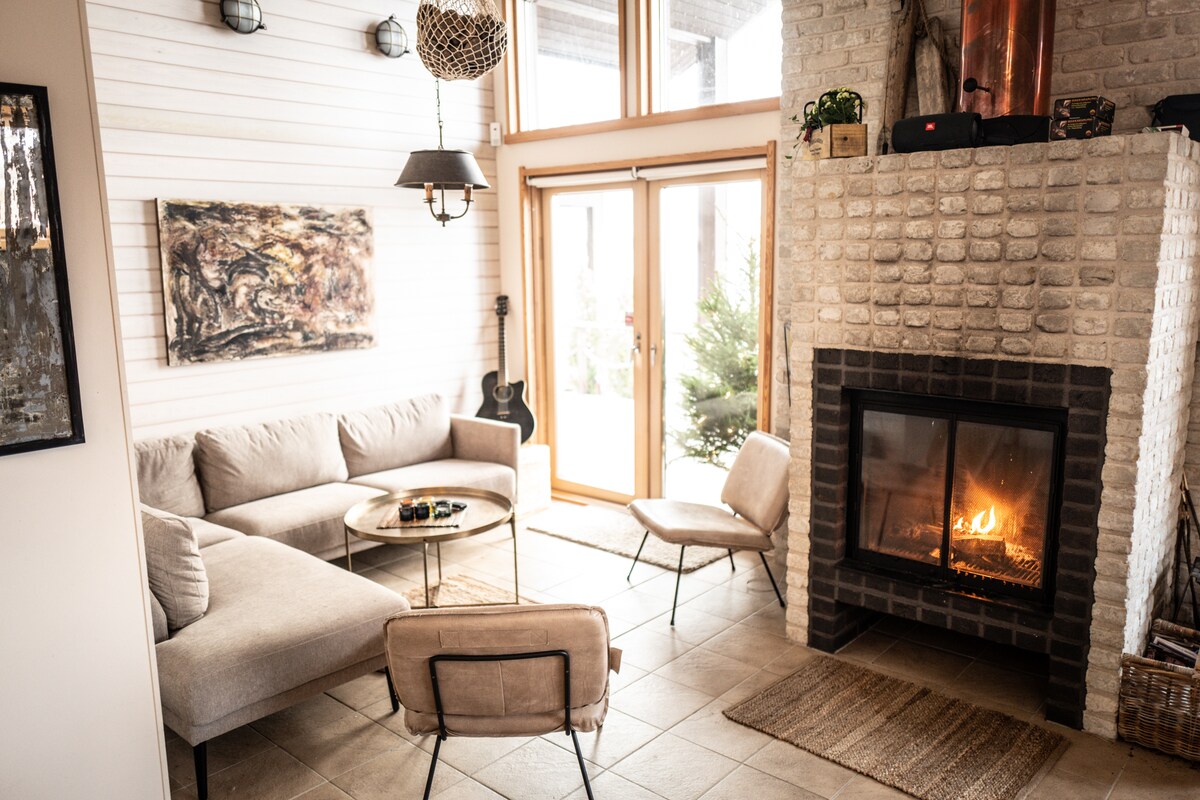 Vacker och modern timmervilla med stora fönster i vardagsrummet som ger bra ljus inuti. På nedervåningen finns två separata sovrum för totalt tre personer, och på övervåningen ett sovloft för fyra. Villan har allt du behöver för en framgångsrik och minnesvärd semester eller till och med bara boende. Du kan också njuta av heden i din egen bastu. Tvättrummet har direkt tillgång till den stora terrassen med en nedsänkt bubbelpool. Den varma badtunnan kan bokas som en separat extra tjänst.
