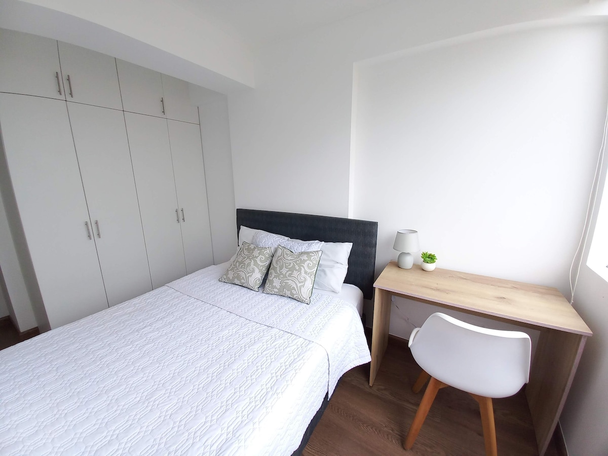 Helt utrustad ny lägenhet som ligger i ett strategiskt område på huvudavenyn i Lima, Peru. Med gemensamma utrymmen i byggnaden för att göra din vistelse till en unik upplevelse. Den är skapad med avsikten att erbjuda ett varmt och välkomnande utrymme för mina gäster, liksom enastående panoramautsikt som gör att du kan njuta av solnedgångarna och stadens skönhet.
