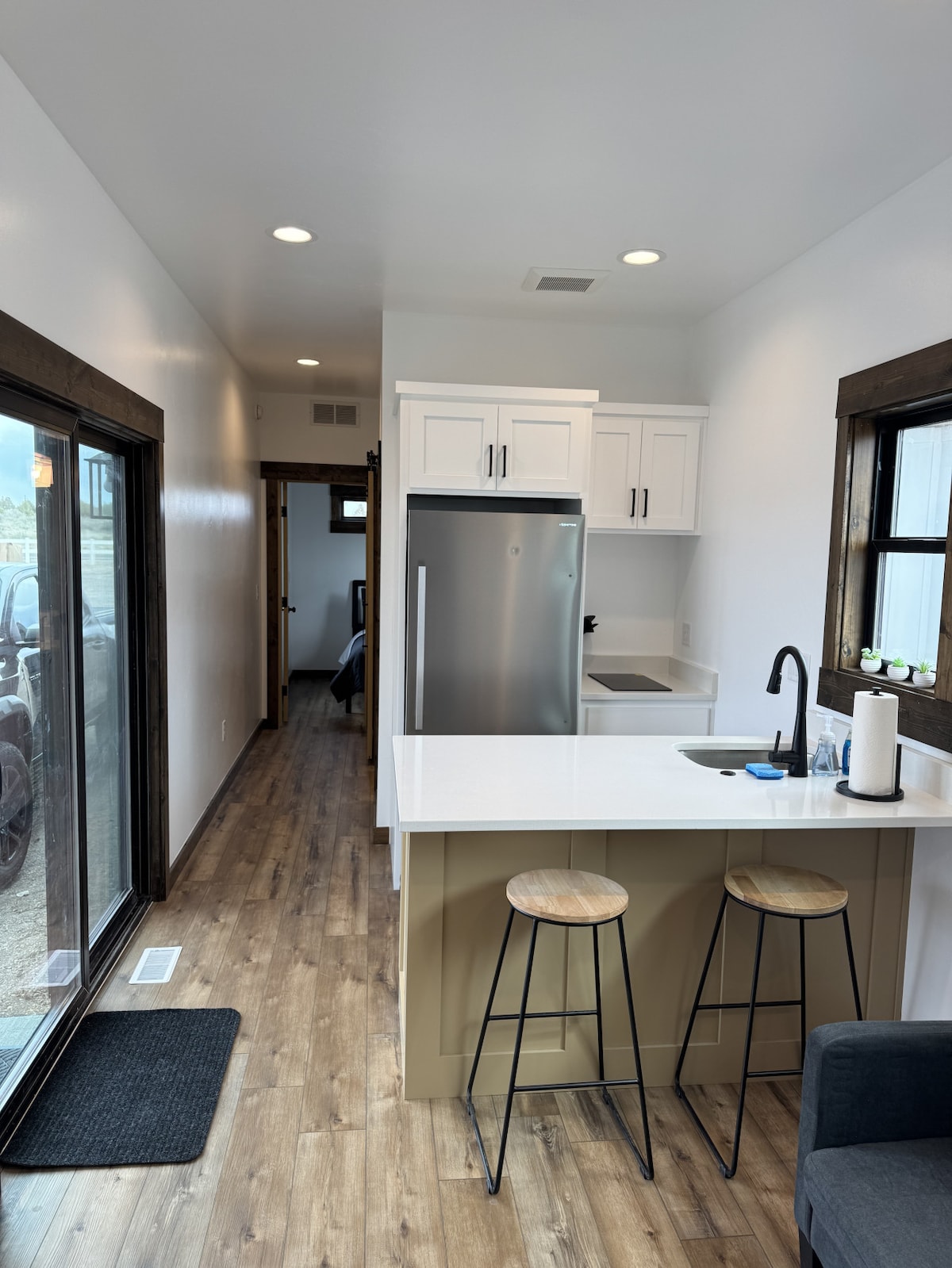 Located in Rexburg, Idaho’s only tiny home community, this 250sqft house has quick access to local favorites: Big Jud’s Burgers, The White Sparrow Country Store, Heise Hot Springs and Zip Lining, Kelly Canyon Ski Resort and Yellowstone Bear World. It is only 15 minutes from BYU Idaho and an hour and a half away from Yellowstone National Park. Included in your stay is a washer/dryer combo, a projector, Starlink WiFi and more. This tiny home may be small but will give you a memorable experience!