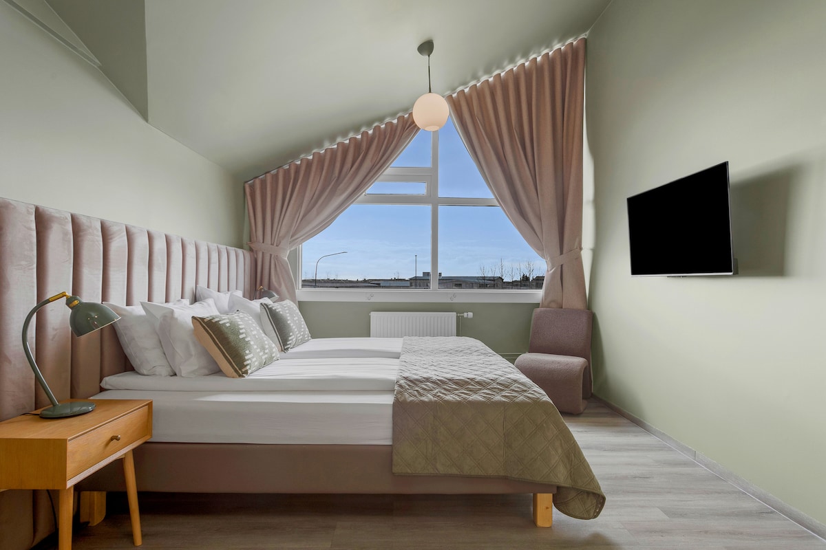 Dubbelrummet Standard är varmt och inbjudande, med en bekväm dubbelsäng med kvalitetssängkläder, mjuk belysning och vackra fotografiska konstverk som förbättrar den avkopplande atmosfären. Rummet är idealiskt för två gäster och erbjuder ett välkomnande utrymme att koppla av efter att ha utforskat Reykjavik. Hotellet ligger mindre än 2 km från centrala Reykjavik, vilket ger enkel tillgång till populära attraktioner. Besök ikoniska platser som The Pearl, Reykjavik Art Museum, Laugavegur Shopping Street.