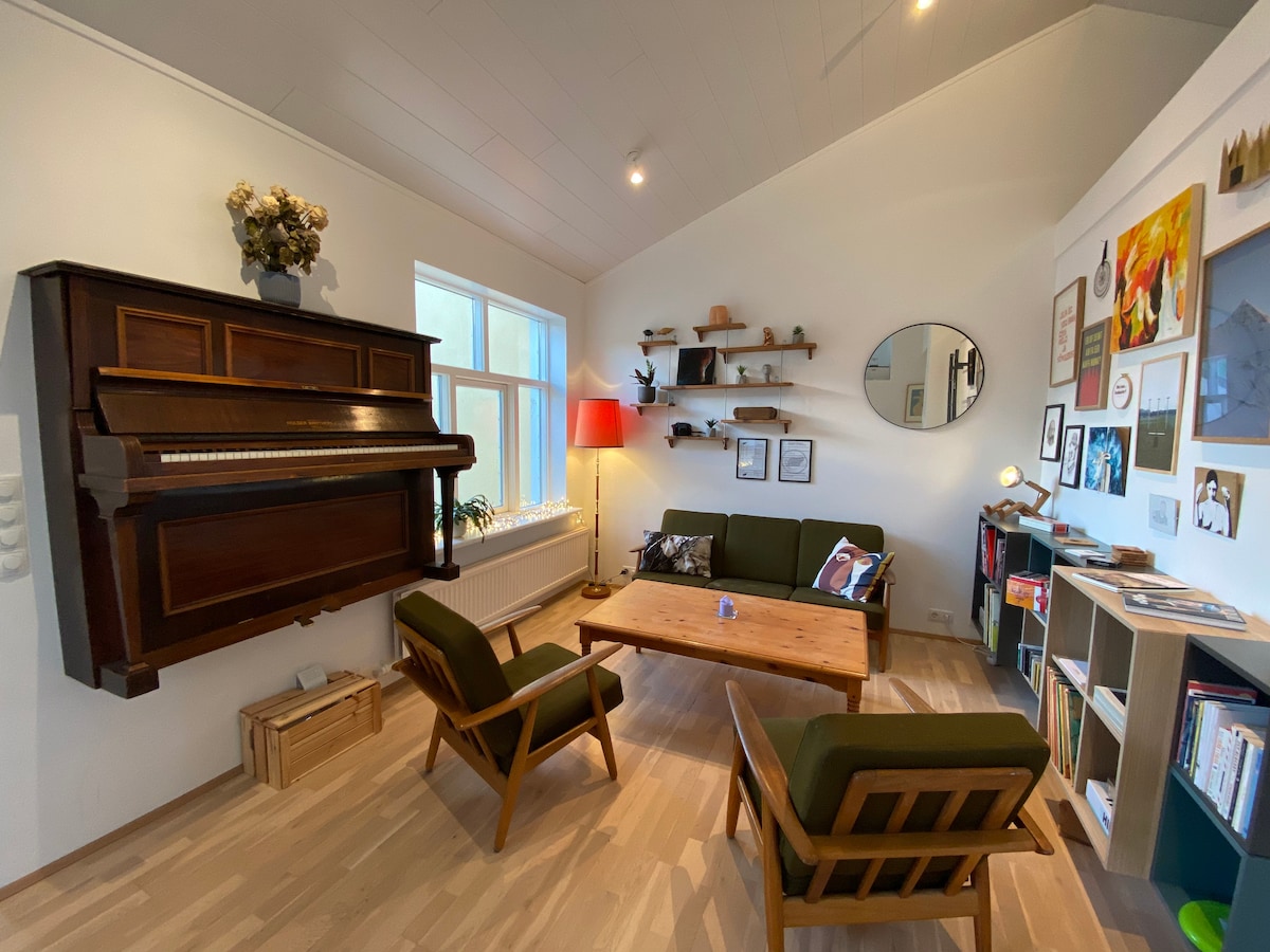 Vacker och rymlig lägenhet i ett fantastiskt läge i centrala Reykjavik. Gratis privat parkering, havsutsikt och en balkong. Två minuters promenad från de viktigaste shoppinggatorna och restaurangerna i Reykjavik. Närliggande landmärken inkluderar Hallgrimskirkja kyrka, Harpa konserthus och Laugavegur shoppinggata. Lägenheten totalrenoverades 2022 i en elegant och bekväm design.