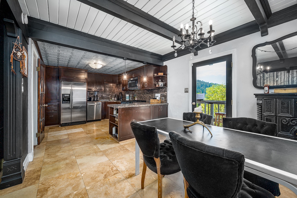 När du går upp för trappor som passerar inhemska stenblock och träd ser du en A-ramsstuga i skogen börja kika ut och bjuda in dig. Väl på det främre däcket drar de stora fönsterfönstren in dig i denna rymliga stuga med högt tak. Inuti kommer samma fönster som lockade dig in, att uppmuntra samma blick nu, förutom utåt. Smakfullt utformat och avkopplande, kanske du inte vill lämna, men Big Bear, och Lake Arrowhead alla lockar inom 30 minuters bilresa... Välkommen till The Scandia 🦌