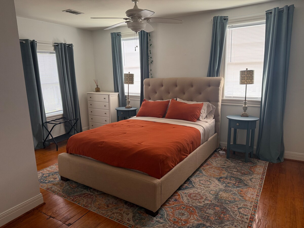 *2 minuters promenad till Med Center *2 minuters promenad till tunnelbana till centrum och NRG *5 minuters promenad till Rice Uni-området *10 minuters promenad till Hermann Park *Lämplig och rymlig för 1 till 5 personer *En ljus luftig alla träslag 2 sovrum / 2 badrum privat duplex renoverad 2021 * 1300 kvm nedervåning i nyinredda 1940-talets hus *Wifi, Smart-TV, W/D tillgång, gott om lyxiga sängkläder, handdukar och comp bad bekvämligheter och kaffe i överflöd! *Dyson Hepafilter & GermGuardian-enheter *Fullt utrustat kök *Egen ingång *1 offroad parkering eller tillståndsplats