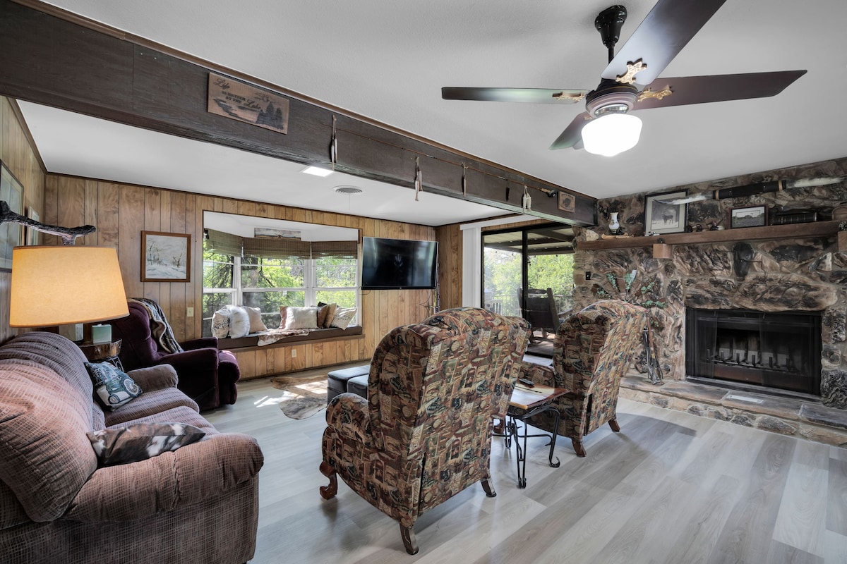 We are excited to welcome you to a stress free retreat. Take a stroll around the property and you may come across some of the wildlife that frequents the area. Relax in the open porch while gazing into nature. The cozy 600 sq ft cabin has all the comfort of modern living with Wi-Fi, smart TVs, fully stocked kitchen and air conditioning available. Enjoy grilling under plenty of natural shade and make unforgettable memories under the stars with smores using the fire pit.