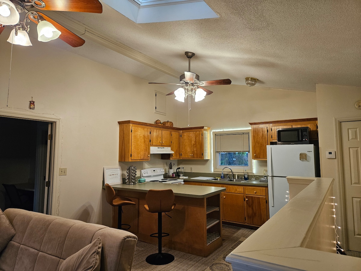 Njut av hela bottenvÄningen i detta boende! TillgÄng till Greeneway Trail! Egen ingÄng med parkering pÄ plats. Det huvudsakliga vardagsrummet bestÄr av ett fullt utrustat kök, tvÀttmaskin och torktumlare, biljardbord, matplats och kontor. Vardagsrummet har en stor platt-TV, Roku, en bekvÀm soffa och elektriskt keyboardpiano. Sovrummet har en queen size-sÀng, garderob och TV. Dessutom en bastu och en massagestol! Alla/varje gÀst mÄste tillhandahÄlla Gov. Foto-ID för att boka och vara 21 Är eller Àldre. Maximalt tvÄ gÀster. INGA HUSDJUR