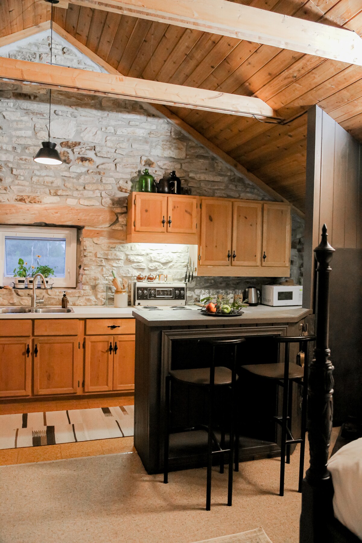 Denna unika och mysiga loftstudio ligger på en 5 hektar stor fastighet, några minuter utanför staden Perth. Studion erbjuder vacker utsikt över trädgården och privat tillgång till Tay River. En perfekt tillflyktsort för par eller ensamresenärer att besöka och utforska östra Ontario, fastigheten ligger 5 minuter från Perth, 1 timme från Ottawa eller Kingston, och 3 timmar från Toronto eller Montreal.