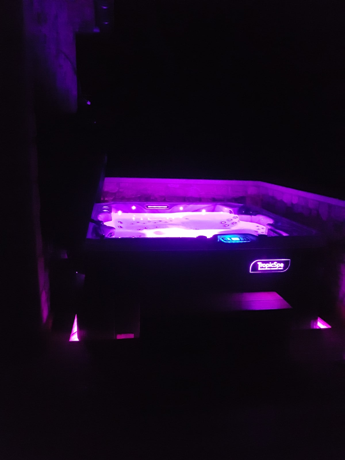 En oas av romantik och avkoppling för älskande! Vårt boende erbjuder en idyllisk tillflyktsort med privat pool, jacuzzi och bastu för stunder av ren avkoppling. Det utrustade köket gör att du kan laga läckra måltider, medan det lyxiga badrummet och sängen på 180x200 ger dig den ultimata komforten. Njut av underhållning med Netflix och Spotify, ladda ditt fordon med vår elbilsstation. Börja dagen med en fullständig frukost.